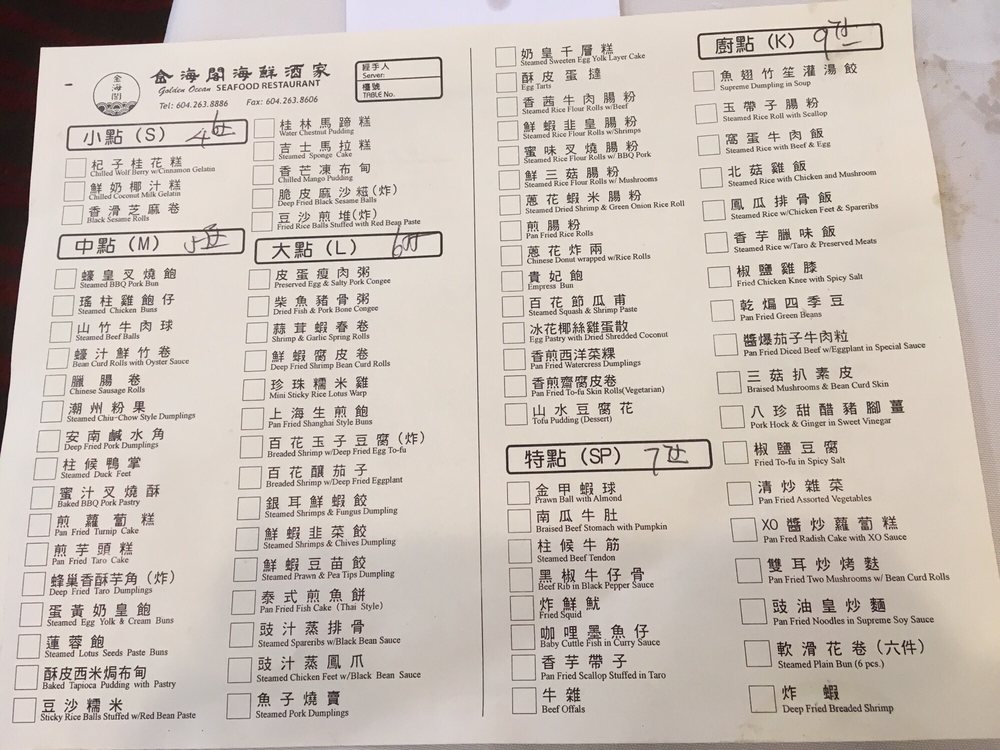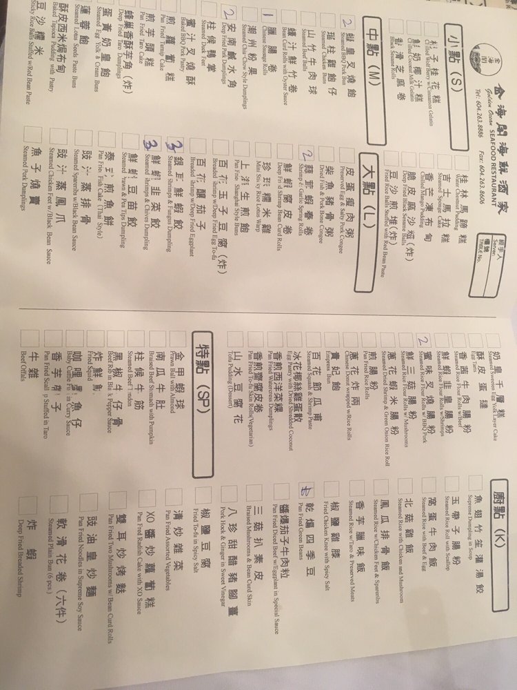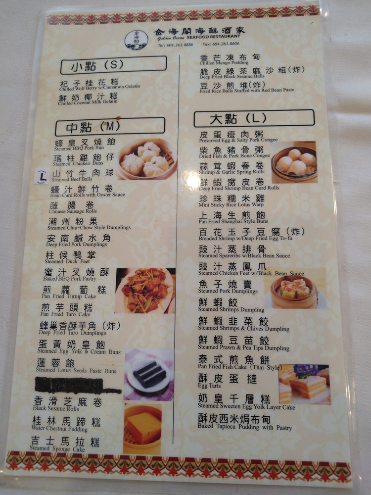 Golden Ocean Seafood Restaurant Menu